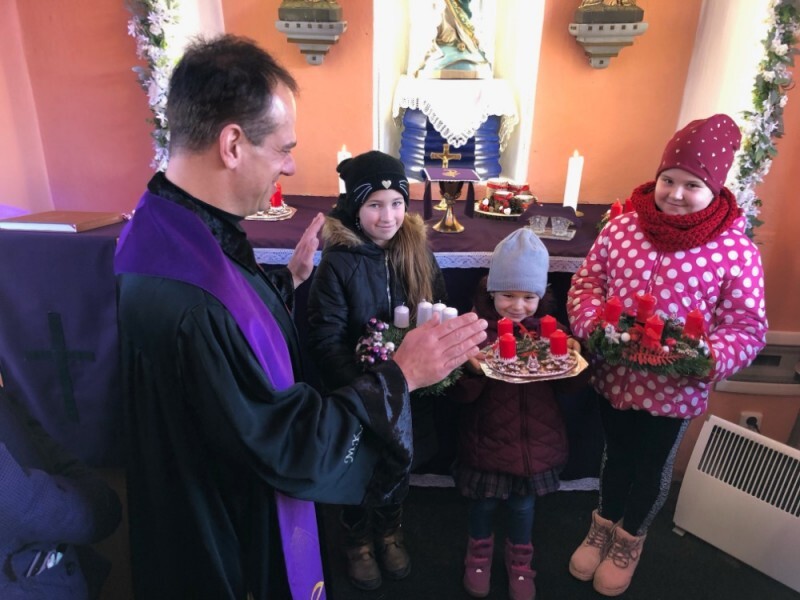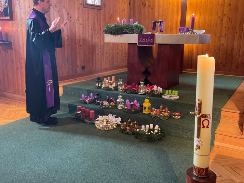 V úterý 22. 11. před biblickou hodinou jsme věnce vyrobili a připravili na neděli. Poslední bohoslužbu uplynulého církevního roku jsme slavili v pátek 25. 11.v 17:30 hodin s přáním všem Kateřinám. To se již definitivně uzavřel liturgický rok s evangelistou Lukášem. V sobotu 26. 11. se v Rudici konala adventní vigilie v místní Kapli sv. Barbory. Bratr farář Martin také v sobotu v podvečer symbolicky zapálil první adventní svíci na věnci, který je na hlavním náměstí v Blansku. Při té příležitosti přednesl adventní zamyšlení na zaplněném náměstí blanenskými farníky a spoustou kolemjdoucích. Na první adventní neděli se konaly v 7:45 hodin první bohoslužby v Boskovicích. Vzhledem k tomu, že v celé ulici byla přerušena dodávka el. energie, byly to opravdové roráty. Bez světel, varhan a topení, ještěže je v kostele klavír, tak jsme nebyli bez hudby, protože naše varhanice hrála na klavír. Další bohoslužba byla v 9 hodin v Dřevěném kostele v Blansku a po ní tradiční posezení pro všechny generace na kávě a čaji v sále na faře. Sváteční dopoledne uzavřela v 11 hodin bohoslužba v kapli na Brťově. Při všech bohoslužbách jsme slavili svátost Pokání s veřejnou zpovědí, jako vstup do času půstu a pokání a na závěr proběhlo žehnání domácích adventních věnečků, které si přinesli někteří účastníci bohoslužeb. První adventní neděli uzavřel v 17:30 hodin první adventní koncert, který se těšil zájmu a účasti mnoha lidí, kteří běžně na bohoslužby nepřicházejí. Věříme, že nás čeká příjemná doba spojená s bohoslužbami, roráty, koncerty a spoustou přátelských setkání. Přejeme požehnaný advent v očekávání zaslibovaného Pána.
