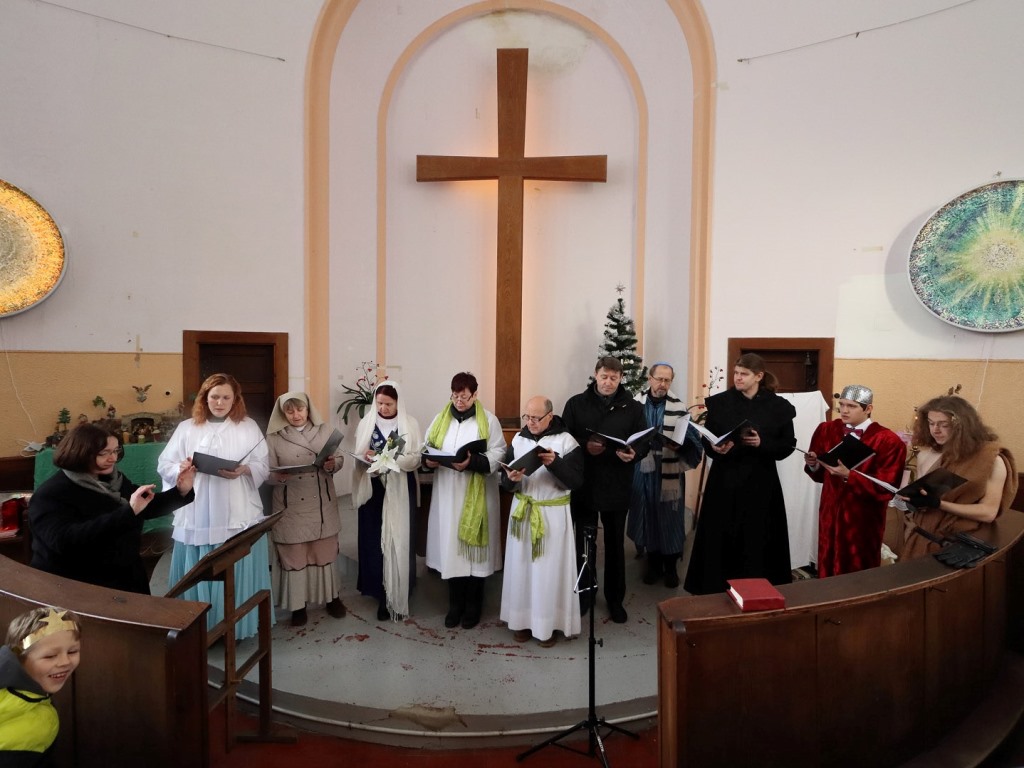 Pěvecký sbor HVĚZDA, zpěvem a dramatizací biblických textů všem přiblížil události, které předcházely narození Ježíše.