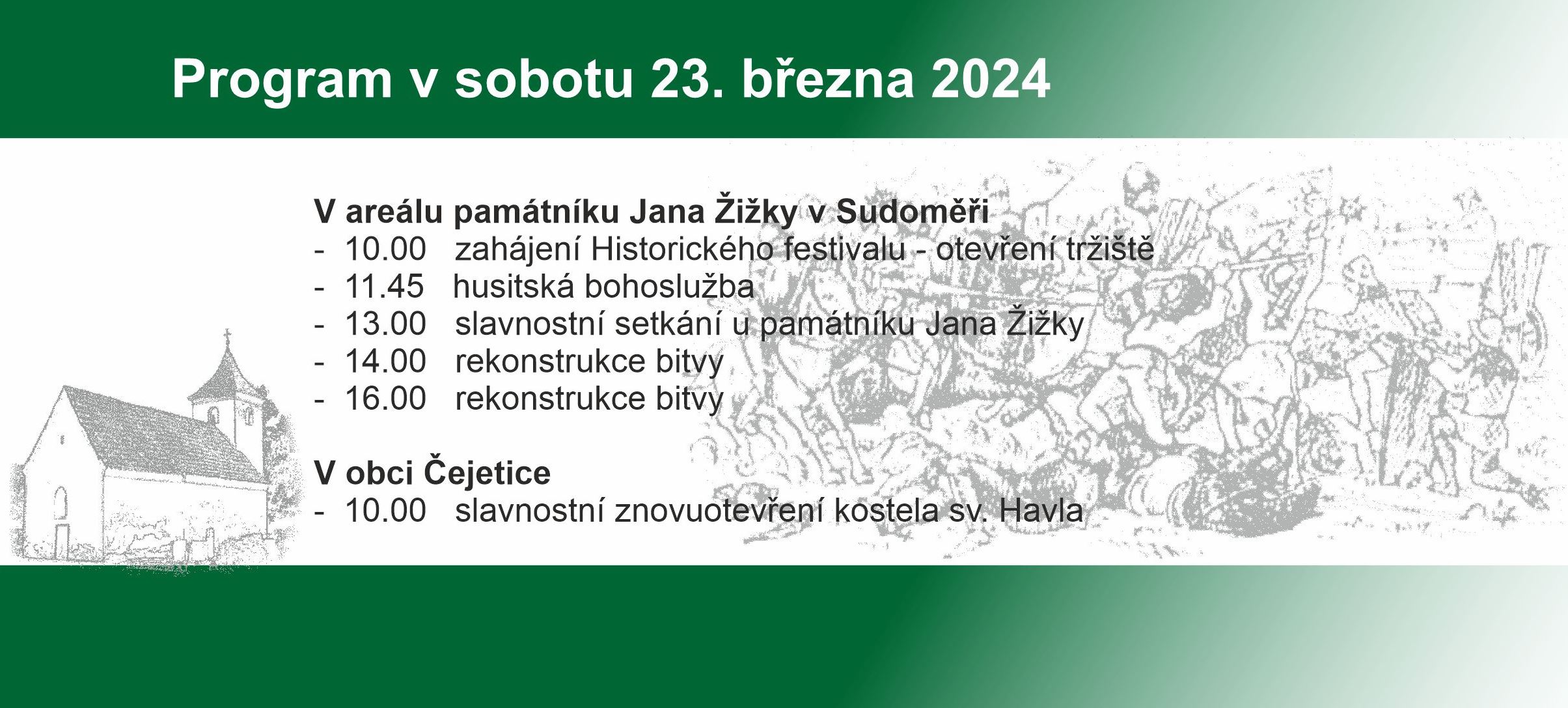 V sobotu 23. března 2024 se u památníku Jana Žižky v Sudoměři uskuteční připomínka slavné bitvy, od které letos uplyne 604 let.