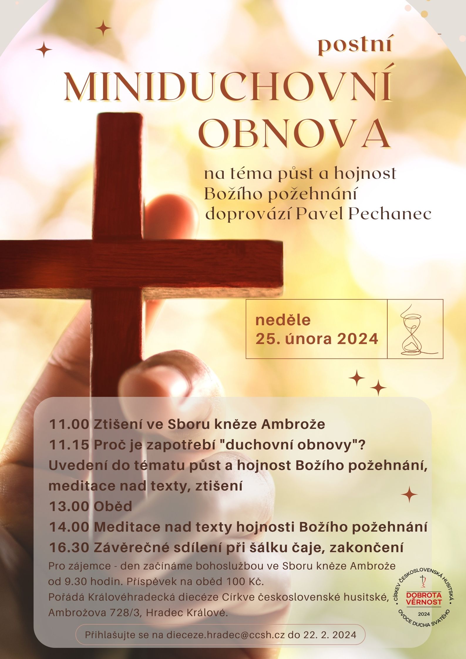 Zveme vás na Postní MINIDUCHOVNÍ OBNOVU na téma hojnost Božího požehnání, kterou doprovází královehradecký biskup Pavel Pechanec.