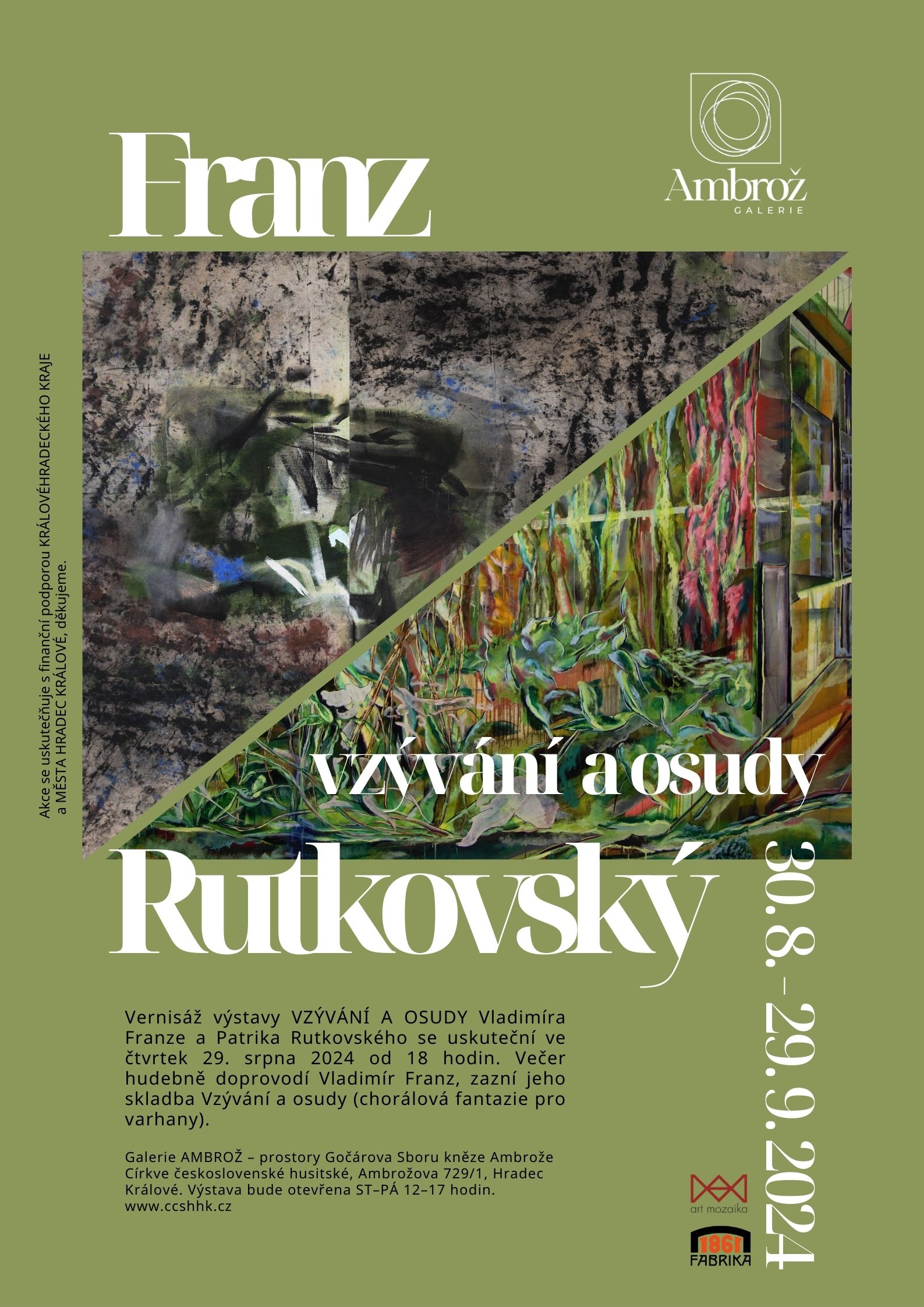 Galerie Ambrož v královéhradeckém Sboru kněze Ambrože uvádí novou výstavu, tentokrát obrazy Vladimíra Franze a Patrika Rutkovského.