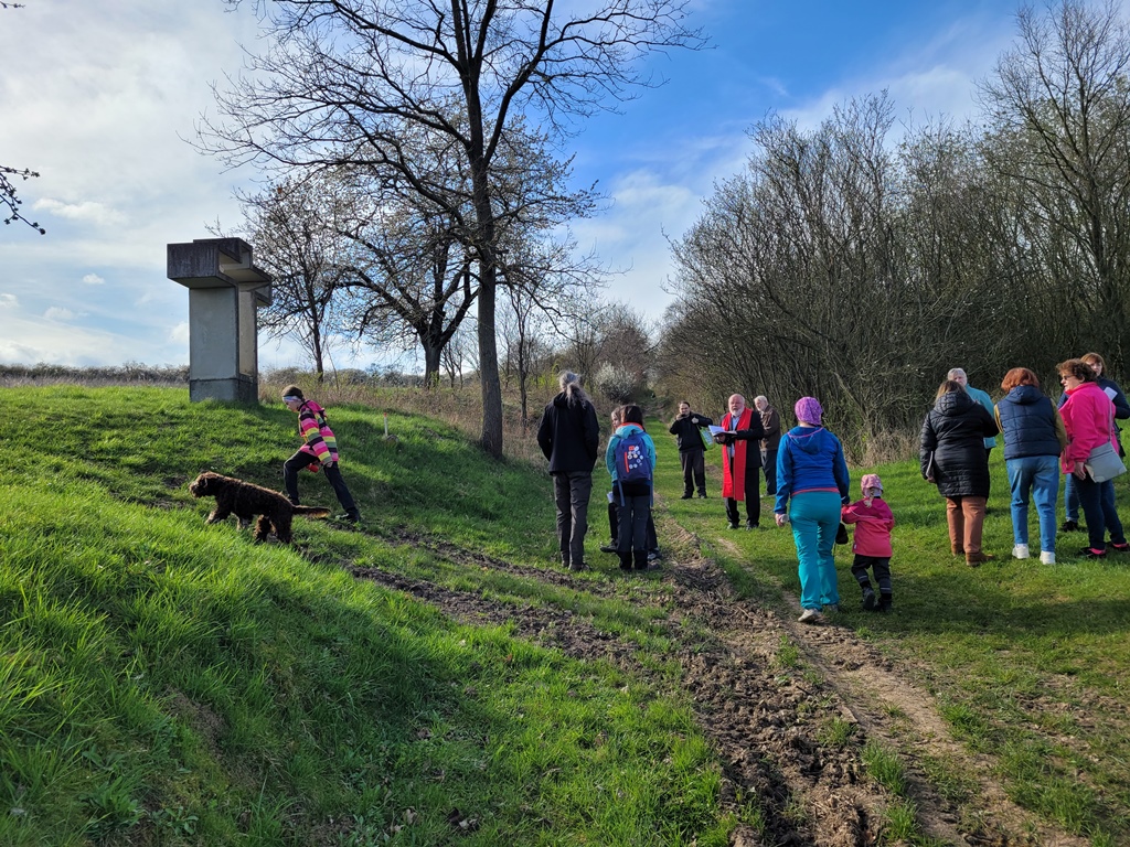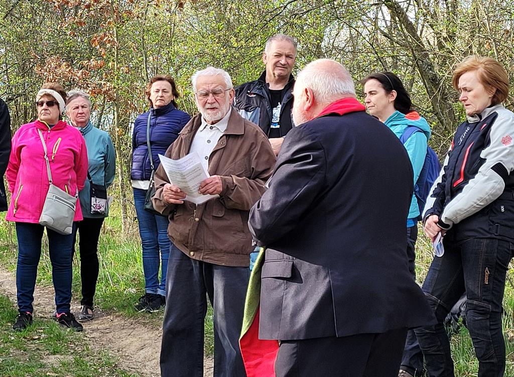 Letos to bylo počtvrté a volba padla na Šarovy, vesnici jižně od Zlína. Byl pátek 29. března 2024. Tentokrát se pouť poněkud lišila od předešlých. Kdo nepoučený se snad domníval, že jede na výlet, brzy po výstupu z autobusu poznal rozdíl. Z místních obyvatel se k nám jako první připojil pan Pavel Leicman, herec Městského divadla Zlín, který ochotně přislíbil spolupráci. Poblíž prvního zastavení na nás čekal hlouček zdejších katolických věřících, kteří naši skupinu rozšířili nejen početně, ale i propojením mezi našimi církvemi.