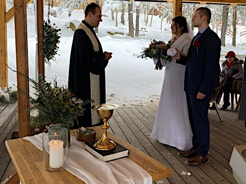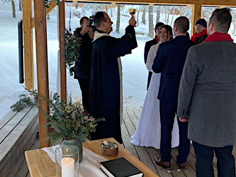 Poslední svatební obřad tohoto roku byl v sobotu 17. 12., ale nikoli v kostele. Snoubenci si přáli mít krásný zimní svatební den v přírodě, což se jim podařilo nad všechna očekávání. Na 4. adventní neděli jsme slavili v úvodu bohoslužeb svátost Pokání, jak se u nás říká Vánoční zpovědi. I přes poměrně velký mráz sto dvacet účastníků vyslechlo zvěst z Matoušova evangelia 1,18-25. Naši zpěváci spolu s varhanicí během večeře Páně připravili trojhlasný kánon Magnificat. Varhanice Nikola Slavíčková spolu s trumpetistou Martinem Kakáčem pro nás připravili opravdu slavnostní bohoslužby. Každou neděli po bohoslužbách ještě část účastníků bohoslužeb rádo posedí v sále na faře. V civilním povolání pracuji jako stavbyvedoucí. A rovněž majitel naší firmy chodí pravidelně na bohoslužby i různá setkání. Na pátečním firemním večírku mi říká: „Nesmíme zapomenout vzít také nějaké občerstvení na nedělní posezení po bohoslužbách." To jsme však netušili, jaké nás čeká ještě jiné občerstvení.