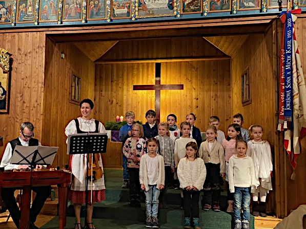 Bratr Jirka Forst s manželkou Marcelkou jsou jedni z těch, kdo pro různá setkání ve farnosti připravují občerstvení a vaří skvěle guláše. Před 14 dny jsme naslouchali evangeliu o Janu Křtiteli: „...potravou mu byly kobylky a med divokých včel." (Matouš 3, 4b) Jirka se rozhodl nám dát evangelium také ochutnat. Připravil nám menu Jana Křtitele. Ne každý si na ně troufl, ale nejlepšími strávníky byli ti nejmenší. Manželky říkali svým drahým polovičkám: "Jestli to sníš, tak už Ti nedám nikdy pusu.“ Chlapská odpověď zněla: „Jsme na jihu Moravy, dáme si na to štamprlu slivovice a nic nepoznáš... budeš z kostela dom řídit auto ty!" Večer se konal poslední nedělní adventní koncert, velmi oblíbené cimbálové muziky Majerán. Lidová hudba se i u nás těší oblibě. Přišlo více než sto třicet spokojených posluchačů, přičemž si mnozí rádi s muzikanty zazpívali. Bohu díky za živé společenství s Kristem i mezi sebou navzájem. Jsme jedno společenství, ač jsme každý malinko jiný, přece nám to není jedno!
