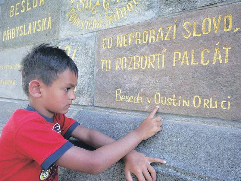 Na jednom z mnoha balvanů čteme, že ho věnovala Beseda v Oustí nad Orlicí. Spletl se v názvu města při tesání textu kameník?
