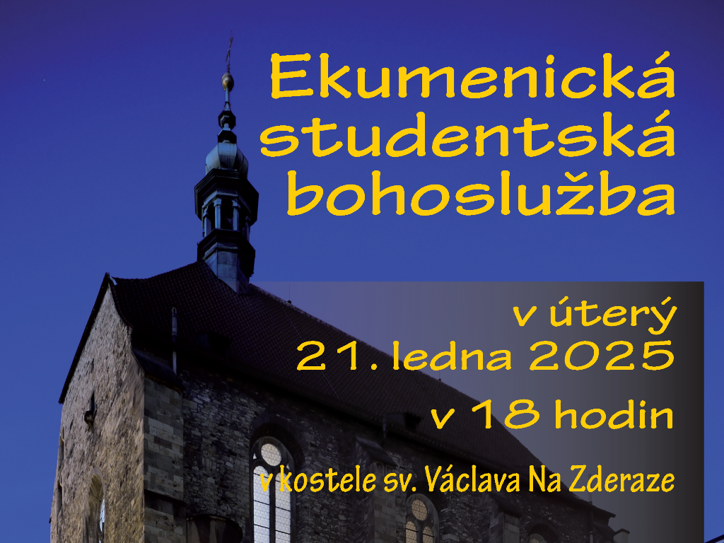 Zveme vás v úterý 21. ledna 2025 od 18:00 do kostela sv. Václava na Zderaze na tradiční 18. ekumenickou bohoslužbu pro studenty, děkany, pedagogy a zaměstnance pražských teologických fakult a škol, konanou v rámci Týdne modliteb za jednotu křesťanů.