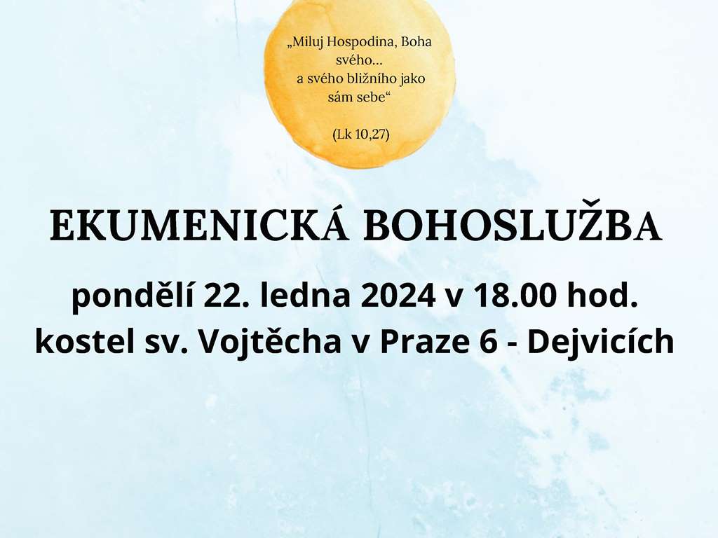Srdečně zveme dne 22. 1. 2024 od 18 hodin na ekumenickou bohoslužbu u příležitosti Týdne modliteb za jednotu křesťanů.