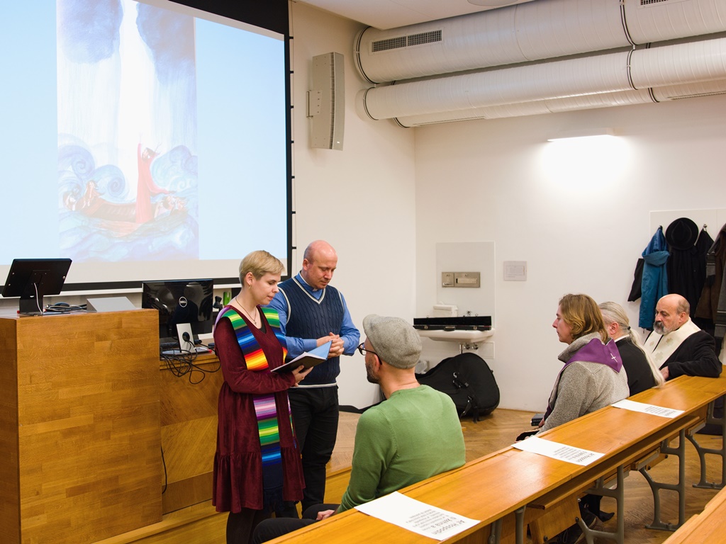 Společně se modlili duchovní, kteří zastupují různé církve a z nichž někteří jsou i členy akademické obce FF UK.