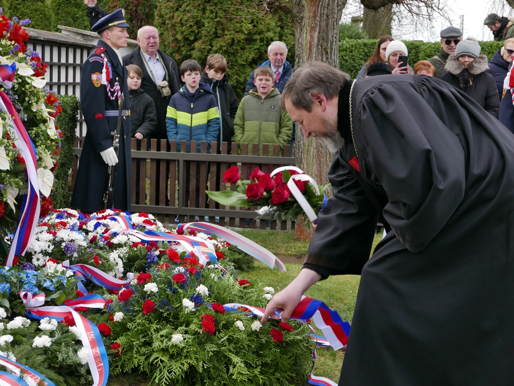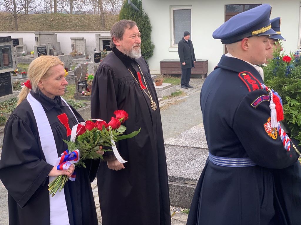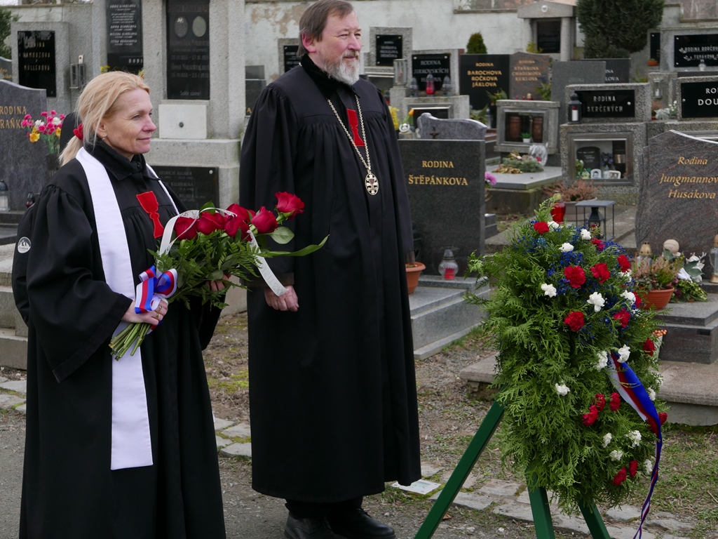 Za Církev československou husitskou památku uctili patriarcha Tomáš Butta spolu s farářkou Janou Šmardovou Koulovou. Pietní setkání bylo zakončeno Večerkou (Il silenzio) a státní hymnou.