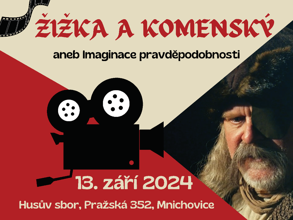 Město Mnichovice a Pražská diecéze CČSH Vás srdečně zvou na slavnostní předpremiéru krátkého doku-filmu ŽIŽKA A KOMENSKÝ aneb Imaginace pravděpodobnosti v pátek 13. září 2024 od 19:00 v Husově sboru v Mnichovicích.