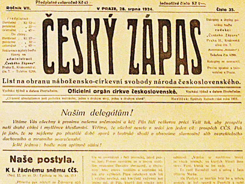 (ČZ 34/2024) Je tomu letos 100 let, kdy se v roce 1924 ve dnech 29. a 30. srpna konalo v Národním domě na Smíchově 1. zasedání I. sněmu Církve československé (husitské).