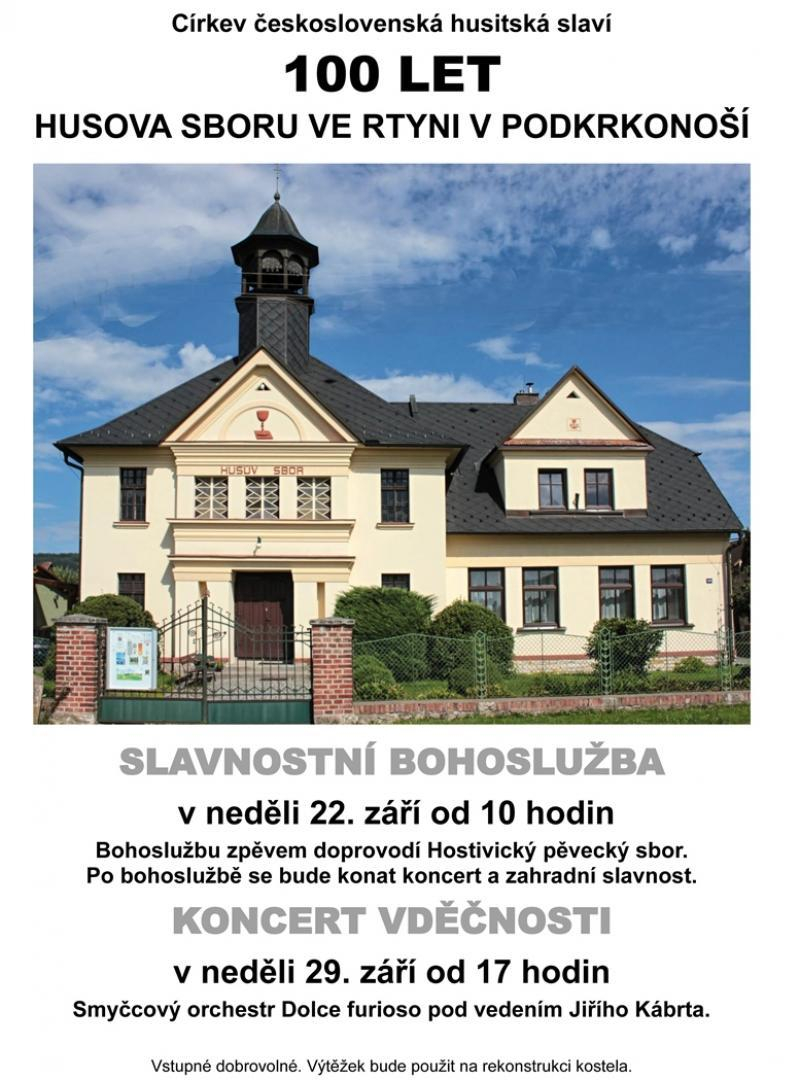 100. výročí Husova sboru ve Rtyni v Podkrkonoší - pozvánka