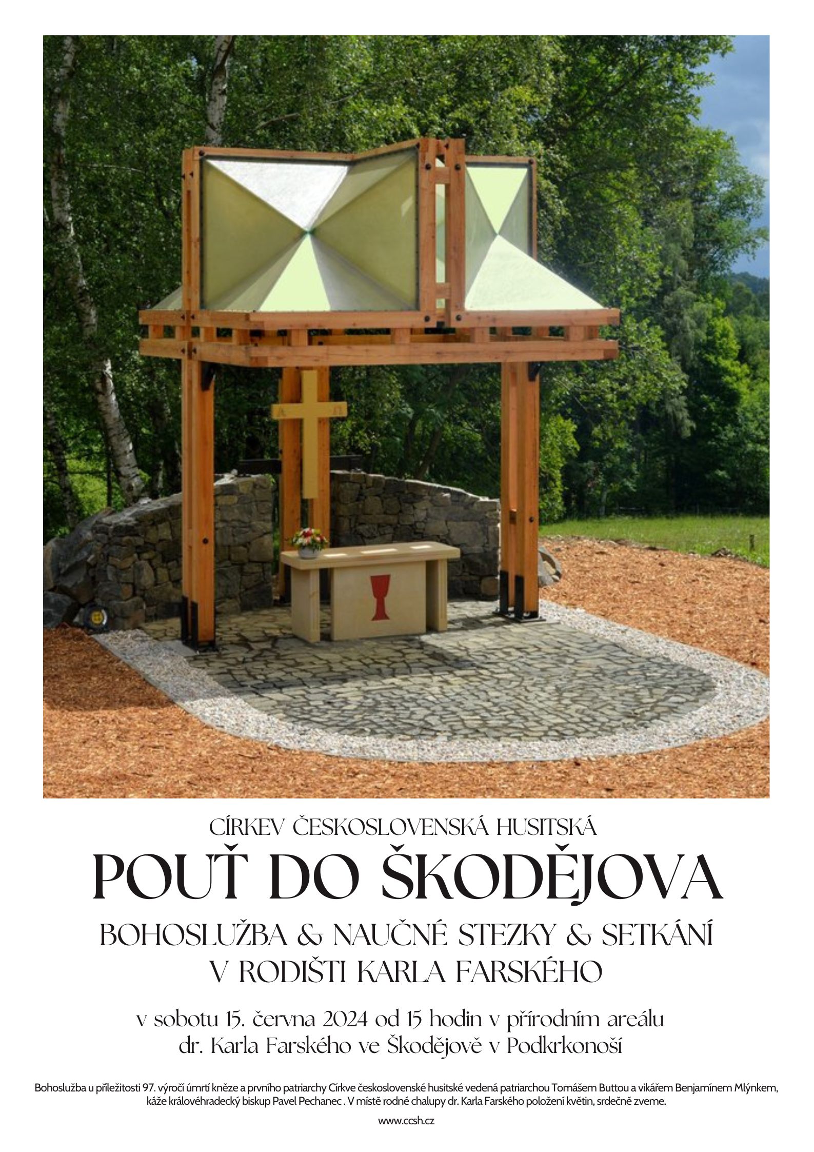 V sobotu 15. června 2024 od 15 hodin se ve Škodějově v Podkrkonoší uskuteční poutní bohoslužba s připomínkou 97. výročí úmrtí prvního patriarchy Církve československé husitské dr. Karla Farského.