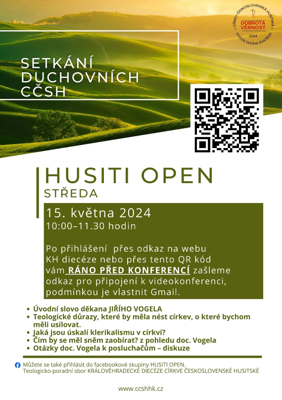 Zveme všechny duchovní a kazatele na další videokonferenci HUSITI OPEN ve středu 15. května 2024 od 10:00-11.30 hodin.