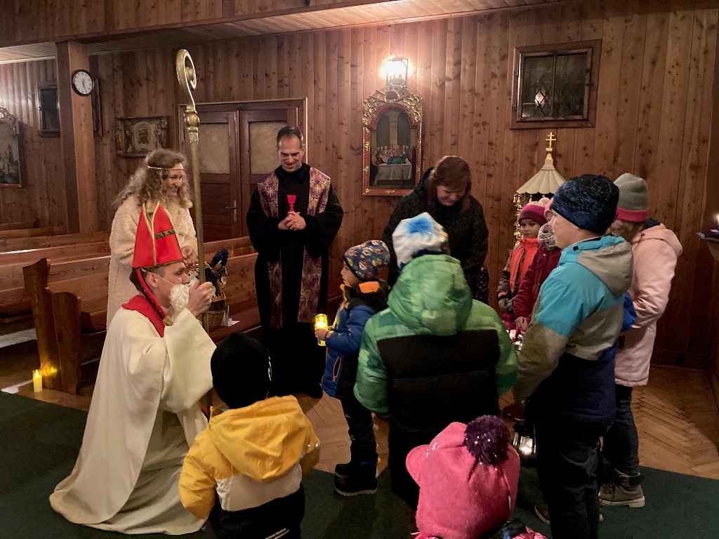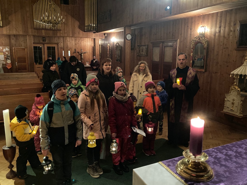 Ohlížíme se také za setkáním pro děti v adventním náboženství. Rorátním průvodem s lucernami za zpěvu antifony “Ejhle, Hospodin přijde” a Mikulášskou návštěvou.