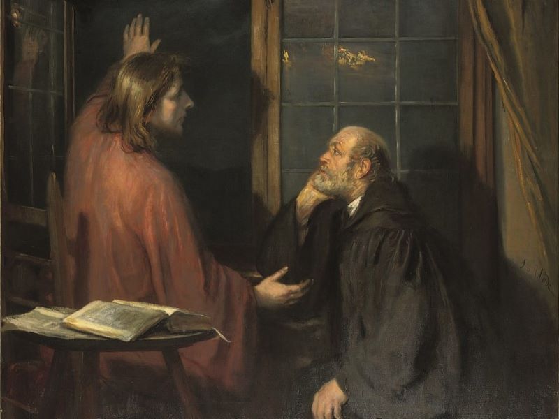 Rád by se zeptal někoho povolanějšího. V tu chvíli využije příležitosti, když slyší o znameních jistého učitele. Přichází s otázkami, a přece je nevysloví. Kdo řídí jeho slova, která pouze prozradí, že skutečně hodně ví. Ano ví, ví, co činit, aby byly zjevné skutky Boží. Přesto žije mezi světlem a tmou. To při svém rozjímání zapomněl, že ono činění je hybnou silou k životu! Život sám povýšený na život věčný.