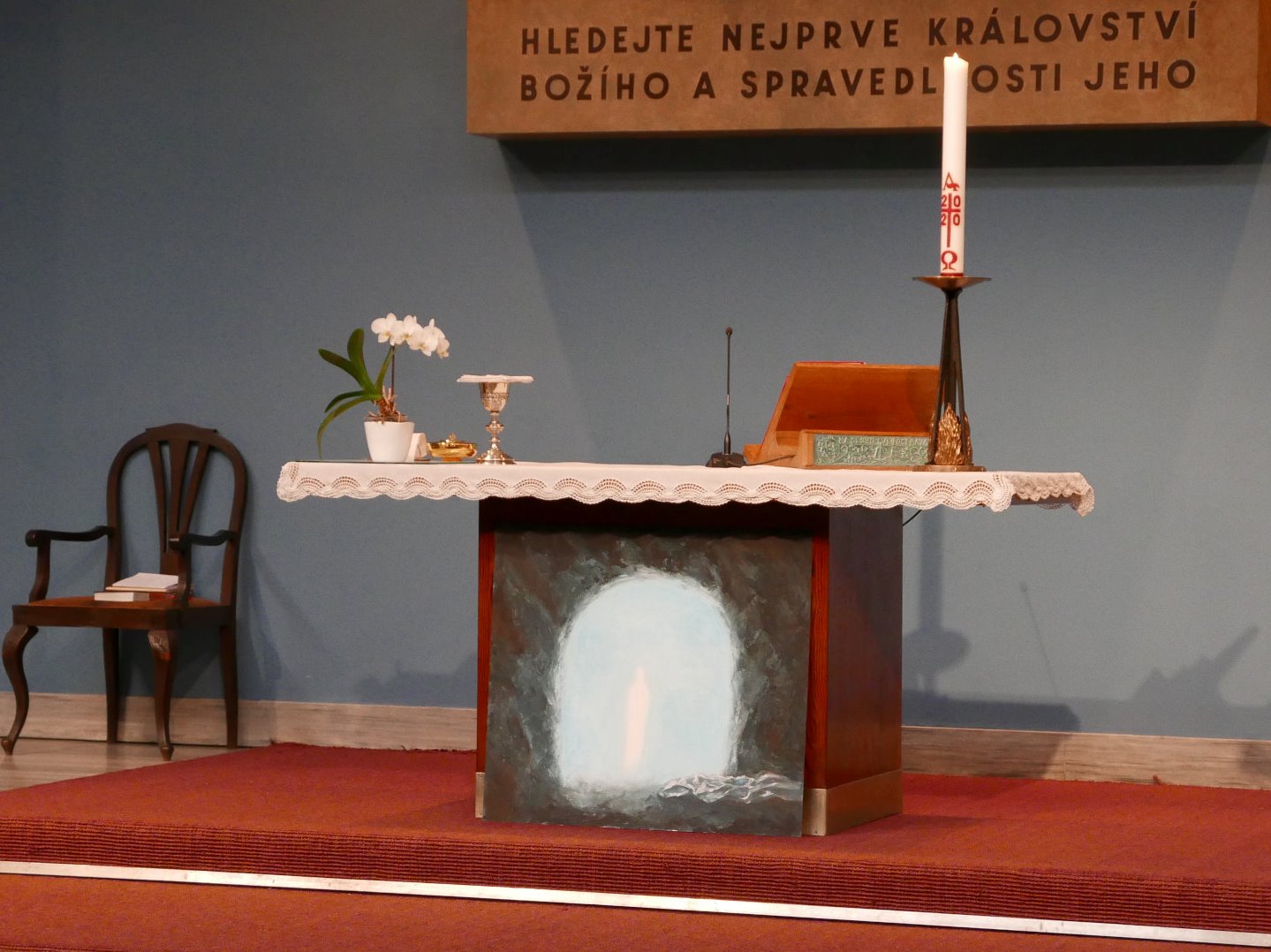 V tomto prostoru Husova sboru v Praze na Vinohradech se při těchto studentských bohoslužbách setkává fakulta a církev. I při odlišnosti těchto institucí, kterými jsou církev a univerzita, sdílíme mnoho společného. Tím společným je hledání a poznávání pravdy. Ježíš nás oslovuje svým výrokem: „Poznáte pravdu a pravda vás učiní svobodnými“ (J 8,32).